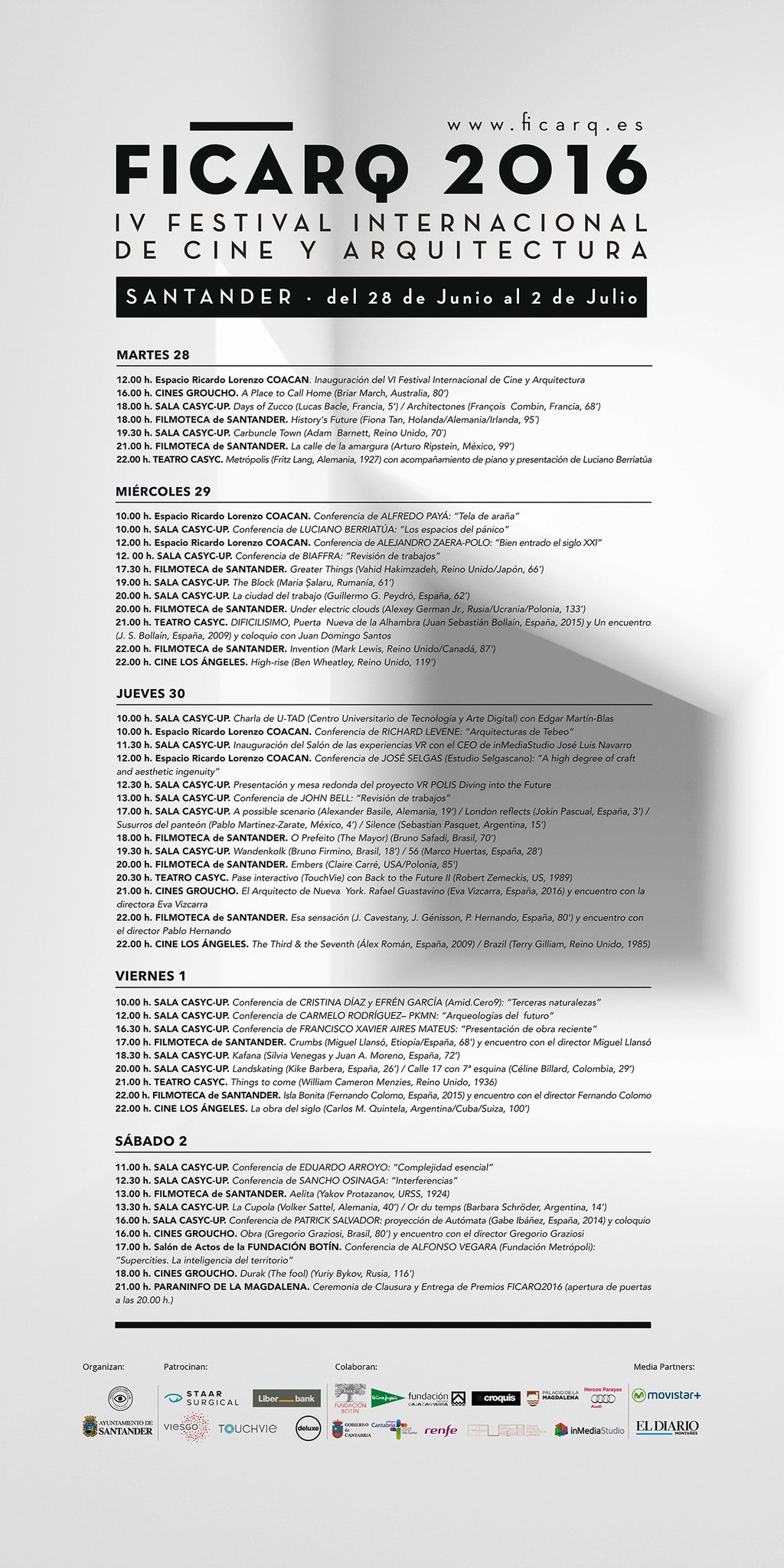 El IV Festival Internacional de Cine y Arquitectura (FICARQ), que se celebrará del 28 de Junio al 2 de Julio en Santander y del que se puede leer AQUI más información, llenará de contenido cinematográfico y